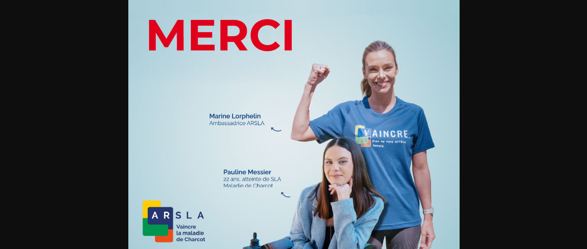Merci à Marine LORPHELIN et Pauline Messier qui ont généreusement incarné cette campagne de sensibilisation. Et merci à microDON qui, convaincu de l’impact de cette première opération d’ampleur pour notre association, a sélectionné l’ARSLA pour une campagne d’affichage dans les transports publics, renforçant ainsi notre visibilité.
