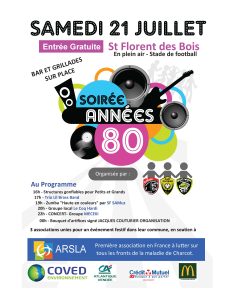3 associations de Saint Florent des Bois (85) se réunissent pour organiser une journée conviviale ! Au programme : à partir de 16h : structure gonflbles et baby-foot géant 18h : Banda 19h : Zumba 20h : Groupe local : le Coq Hardi 22h : MECEKI, qui reprendra les plus grands tubes des années 80 […]
